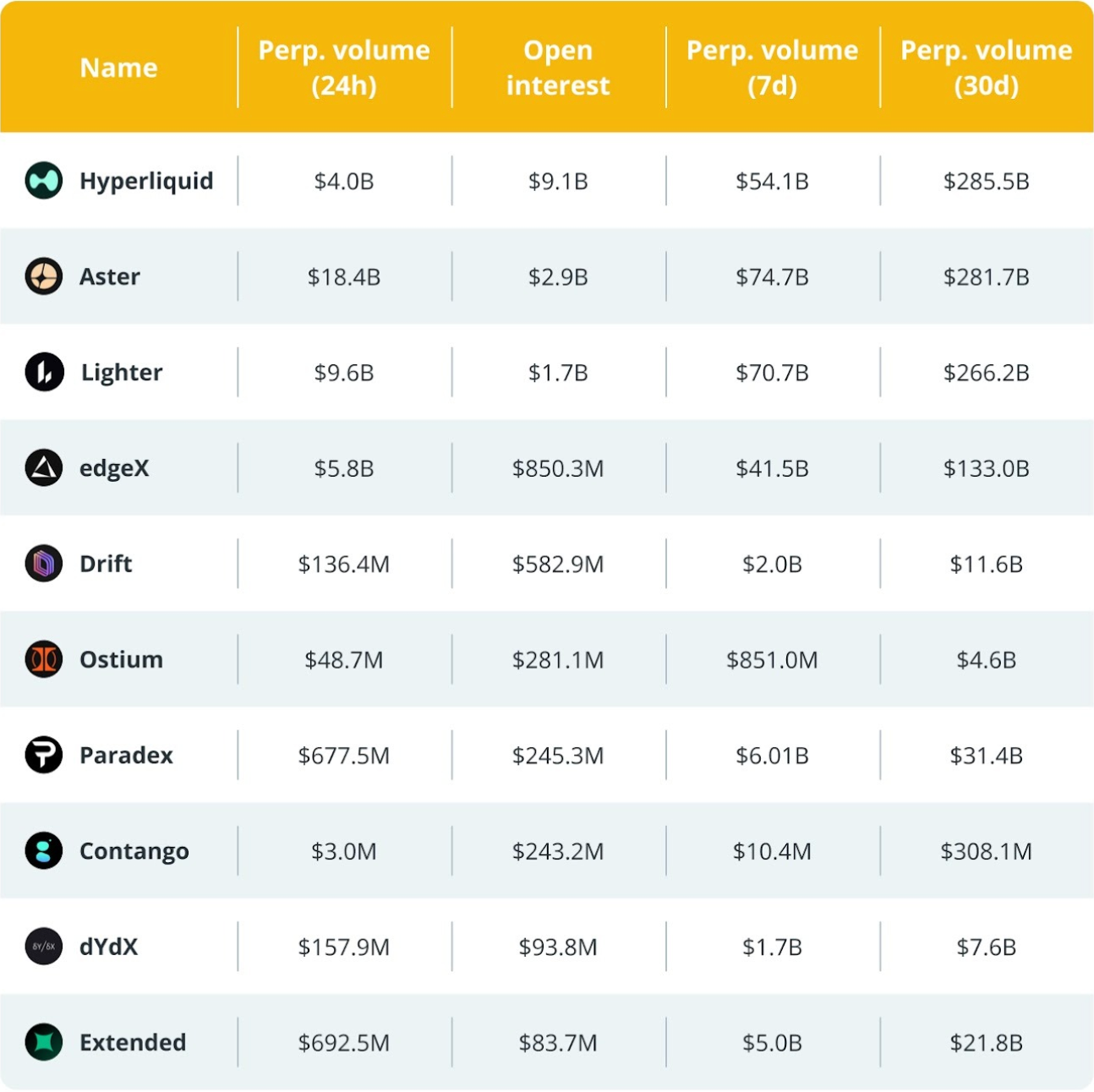 “Hyperliquid的成功因素之一是其空投策略,它鼓励用户在很长一段时间内积极在平台上交易。” 这一招非常奏效,以至于新入场的竞争者Aster和Lighter也迅速复制了这种模式,并成功从领先者手中夺取了部分市场份额。 这证明了在当前阶段,巧妙的激励机制是获取用户的最快路径。
